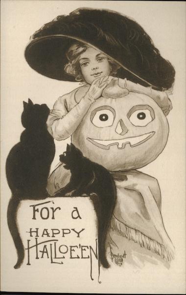 Front: For a НАРPY HALOEEN Bondant WAN Back: ost Card AAND CANADN MEXICO THE GIBSON ART CO., CIN., O.