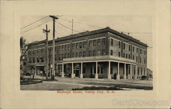 Front: EFE EEEE Rudolph Hotel, Valley City, N. D. 111 LIVERY Back: No 3089 Published for Siegfried Pharmacy, Valley City, N. D. BLOOM BROS. MINNER POLIS 236899