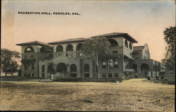 Front: RECREATION HALL, NEEDLES, CAL, 55 Back: needles, bal. Sept 9/08 Genry Behrens HAND COLOR STAP LERE