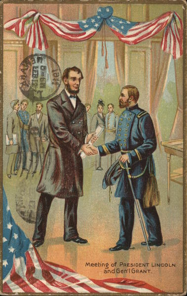Front: Meeting of PRESIDENT LINCOLN and Gen'l GRANT. LEB12 Back: TARK FEB 13 9 - PM IVE 1911 1911 Miša Maklatreong 1 Bonheide and us Franno Love Hamo U g.