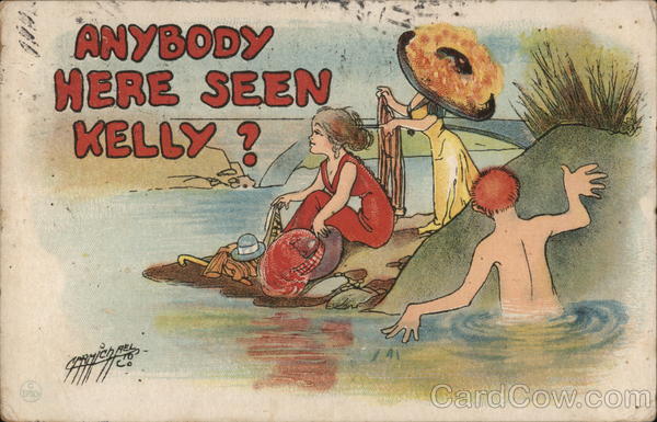 Front: ANYBODY HERE SEEN KELLY ? 11 Back: T.P. & CO.NY, us S.POSTAG SEPI 5-PM 19 10 CAL PET SEP13 PH 5 PM 1916 & POST GARD Fon Beige, 2/2lac Siloan anvelopment am fulinfine nentone Sumbernandina Co Calif. Town coomin A 사