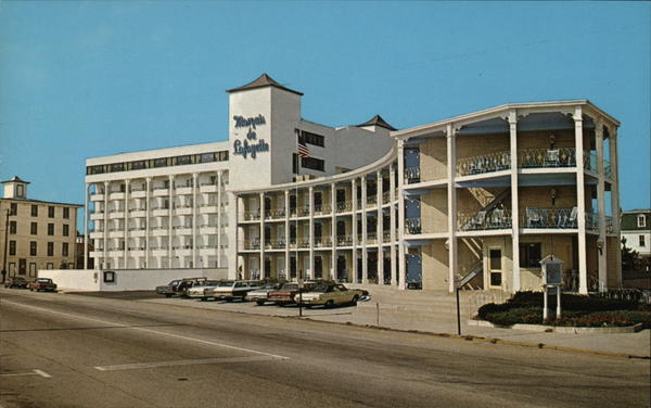 Front: *** 23 **** Marquile de Lafayette Back: DISTRIBUTED BY STEGER BEACH SERVICE, CAPE MAY, N. J. CURTEICHCOLORⓇ3-D NATURAL COLOR REPRODUCTION (REG. U. S. A. PAT. OFF.) CAPE MAY, N. J. LAFAYETTE MOTOR INN MARQUIS DE LAFAYETTE 1EK 611 PLACE