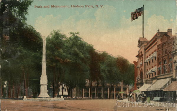 Front: Park and Monument, Hudson Falls, N. Y. 209,265 Back: The Leighton & Valentine Co., N.Y. City. QUALITY POST I& FAMOUS THROUGHOUT WORLD Address Only