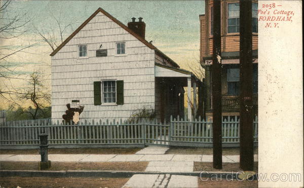 Front: PRIVATE PROPERTY 2058-- Poe's Cottage, FORDHAM, N. Y. Back: Souvenir Post Card Co., New York Printed in Germany. 11 TWO CENTS