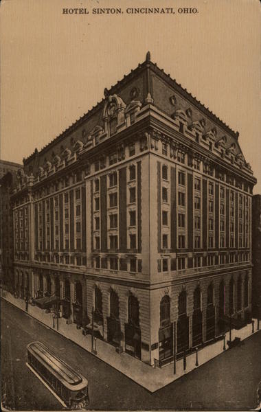 Front: HOTEL SINTON, CINCINNATI, OHIO. 2222222 NG GEG Back: NORWOOD SOUVENIR CO.. CINCINNATI, O. THIS SPAON FOR WRITING IL FLAG STAMP