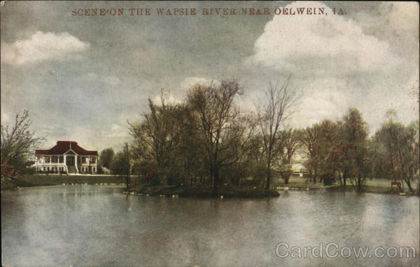 Front: SCENE ON THE WAPSIE RIVER NEAR OELWEIN, IA. NO 40 10 201 Back: MESSAGE CAN BE WRITTEN ON THIS SIDE 131 ROCK ISLAND POST CARD CO. ROCK ISLAND ILL. HERE