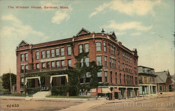 Front: The Windsor House, Gardner, Mass. 62633 FF FFAA 6.5 37111 DORA BROS Back: THIS SPACE MAY BE USED FOR MESSAGE FOREIGN- THIS SPACE FOR THE ADDRESS
