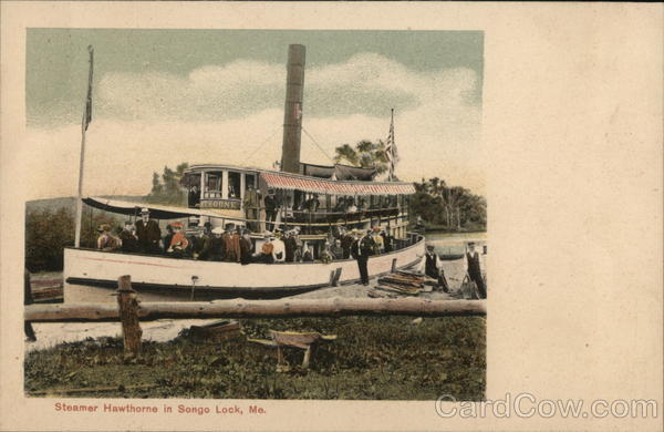 Front: THORNE Steamer Hawthorne in Songo Lock, Me. Back: 28-783 Published in Saxony by G. W. Morris, Portland, Maine. For Message One Cent for United States and Island Possessions, Cuba, Canada and for Foreign. 90123