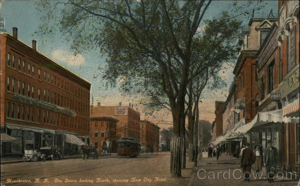 Manchester, N. K. Elm Street looking North, showing New City Kotel.