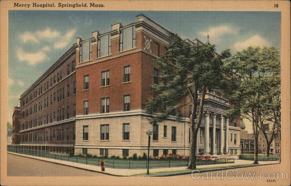 Front: Mercy Hospital. Springfield. Mass. 16 AO ST EAR 66441 Back: MADE IN U, S. A *TICHNOR QUALITY VIEWS REG. U.S. PAT, OFF. MADE ONLY BY TICHNOR BROS., INC., BOSTON, MASS, PUBLISHED BY SPRINGFIELD NEWS COMPANY