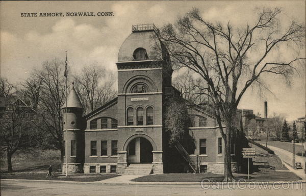 Front: STATE ARMORY, NORWALK, CONN. ST ARNE9 DAS ER CANANH EXSON Back: Published for Freese Photo Company, Norwalk, Conn., by The Collotype Co., Elizabeth, N.J. and N.Y.