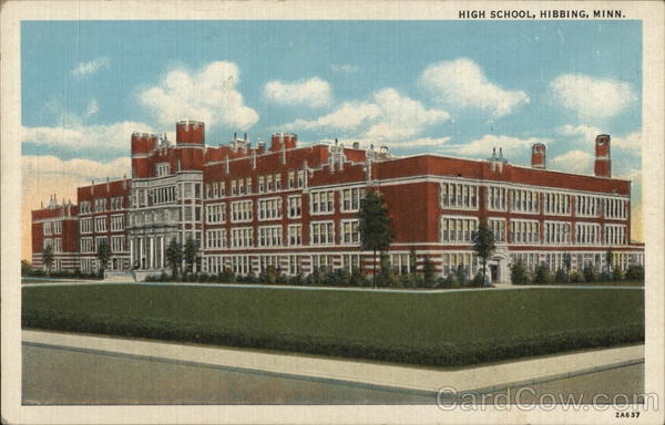 Front: HIGH SCHOOL, HIBBING, MINN. DIE TE 2A637 Back: HIBBING DAILY TRIBUNE, HIBBING, MINN. C. T. AMERICAN ART COLORED T. PGO