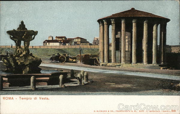 Front: ROMA Tempio di Vesta. G. BLÜMLEIN & CO., FRANCOFORTE S. M., RAPP C. IMPERIALE NAPOLI. 230 Back: NB Sul lato anteriore della presente si scrive soltanto l'indirizzo. (CARTE POSTALE D'ITALIE). CARTOLINA POSTALE ITALIANA