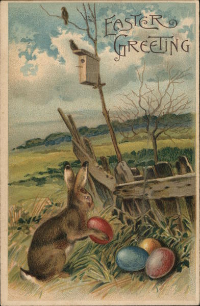 Front: FASTER GREETING Back: This space may be used for communication. A.TS. 6. 52. Ethel and Helen to Aunt Ebjabuith ави Miss Elizabeth Hongt Caldwell Box 175- NJ I