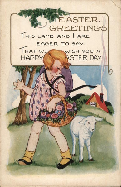 Front: EASTER GREETINGS THIS LAMB AND I ARE EAGER TO SAY WE THAT HAPPY WISH YOU A ASTER DAY Back: Whitney Made orcester Lass. MADE IN U. SA C