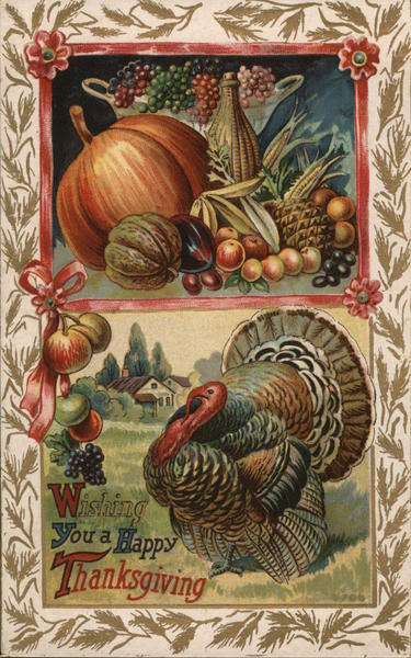 Front: 's Wishing You a Happy Thanksgiving 35 Back: DE THIS SPACE MAY BE USED AND CANADA, FOREIGN, TWO CENTS.