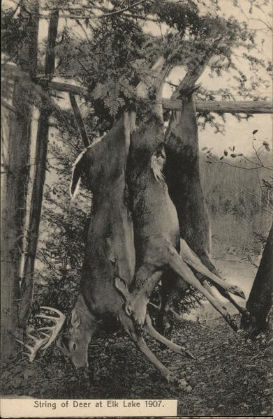 Front: String of Deer at Elk Lake 1907. Back: Made in Germany for H. R. Hulett, Ticonderoga, N. Y. No. 207 For Correspondence only. 101 [Stamp Here] Domestic, 1c Foreign, 2c