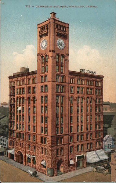 Front: Mi TAVERNEM 928 OREGONIAN BUILDING, PORTLAND, OREGON. 11 22 111 KILA TREE ORE CONIAN INFOR Back: MADE IN AMERICA BY EDW.H MITCHELL AT SAN FRANCISCO.CALIFORNIA. THIS SPACE FOR ADDRESS ONLY