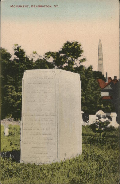 Front: MONUMENT, BENNINGTON, VT. THE STURES CIE LONEL 11 SAKS EL DILL Cherch Back: A. C. Bosselman & Co., New York. Printed in Germany. Place Pustage Domestic and 1-