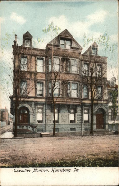 Front: Executive Mansion, Harrisburg. Pa. 11 hn Back: Illustrated Postal Card Co. New-York-Leipzig. 26.-3 Miss Bliza Boyer. DOMESTIC AND Two CENTS