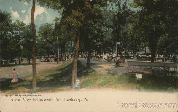 Front: in 4449 Copyright 1905 by the Rotograph Co. G 6183 View in Reservoir Park, Harrisburg, Pa. KEEP DPW MBANKMEN Back: The Rotograph Co., N. Y., City. (Germany. Two cents