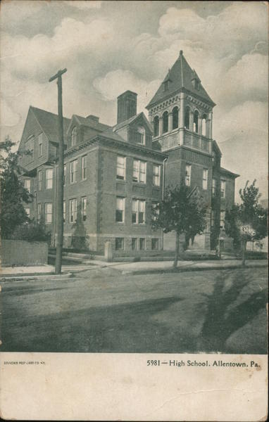 Front: SOUVENIR POST CARD CO N.Y. HEFFLE ********** 5981 High School, Allentown, Pa. Back: Post Card-- (ਸਰ th TWO CENTS
