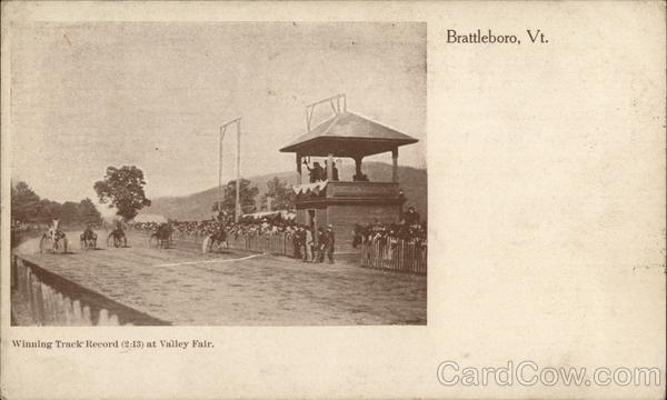 Front: Winning Track Record (2:13) at Valley Fair. Brattleboro, Vt. Back: AUTHORIZED BY ACT OF CONGRESS OF MAY 19, 1898 100 HERE.