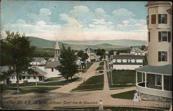 Front: nj White Mts. N.H., Jefferson, Jefferson Street from the Waum bek LAL Back: THE HUGH C. LEIGHTON CO., MANUFACTURERS PORTLAND, ME., U.S.A. 7 AM 191 N. H. CONE CEN HVISOR'S N Mrs Fired Lancester Greenwich Comm PO Box 34.