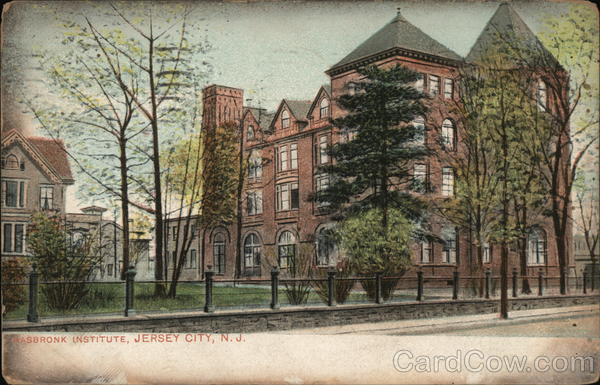 Front: HASBRONK INSTITUTE, JERSEY CITY, N. J. Back: F. G. Temme Co., Orange N. J. and Leipzig, Germany. 11'5 Post Cards AUG 12 2 9-AM 7912 Miss. Elsie - I forget #47-5th Av. 1 Jong Deland City, M.Y. re ....