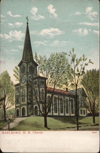 Front: CON MARLBORO, M. E. Church. 70000 2046 Back: Made in Germany. A. C. Bosselman & Co., New York. 2.00 One Cent for United States, and Island Possessions, Cuba, Canada and For Foreign. m