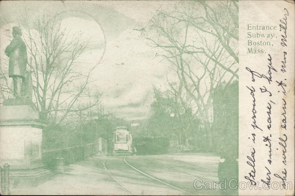 Front: Mass. Boston, Subway, Entrance Stella is proud of her suit-case, I hope she will earn it. Mas Miller. Back: )) Mrs. BUFF SERIES 1902 UNI ED STATES OF SEP 13 6PM N. DA 1706 FRANKLIN 1790 886 E. Jasperson. Buffalo n. Dak.