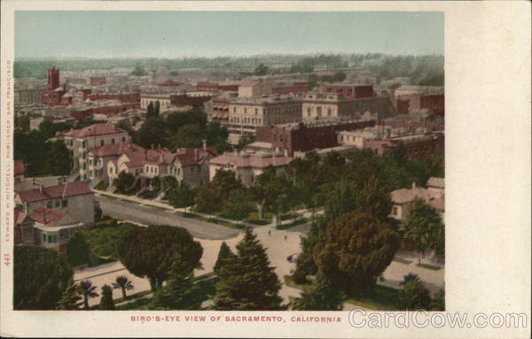Front: EDWARD H. MITCHELL, PUBLISHER, SAN FRANCISCO 445 110 1100 *** BIRD'S-EYE VIEW OF SACRAMENTO, CALIFORNIA Back: Post Card- TWO CENTS