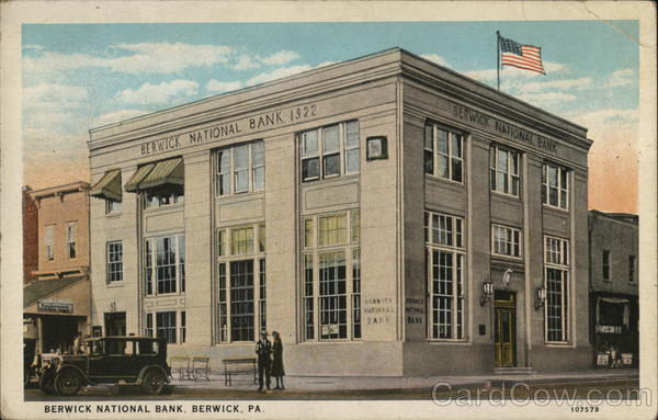 Front: LN THOMPSON CUT BAK BERWICK NATIONAL BANK 1922 60330 17.8 BERWICK NATIONAL BANK, BERWICK, PA. ***** NATIONAL BANK MANCI BANK BERWICK NATIONAL BANK 107579 8888 13 Back: MADE BY CURT TEICH & COMPANY, INC., CHICAGO, U.S.A.