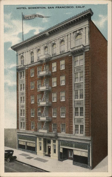 Front: HOTEL SOMERTON, SAN FRANCISCO, CALIF. SOMERTON HOTEL FE CA FFA VED GO Back: 42186 Hotel Somerton, 440 Geary Street, San Francisco. Post Gard fue