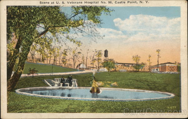 Front: Scene at U. S. Veterans Hospital No. 98, Castle Point, N. Y. fabika T 1 ER 28 1111 21677 2 Back: Pub. by R. T. Van Tine. Beacon, N. Y. HADEMUSA Mr. Willian l STAMP HERE