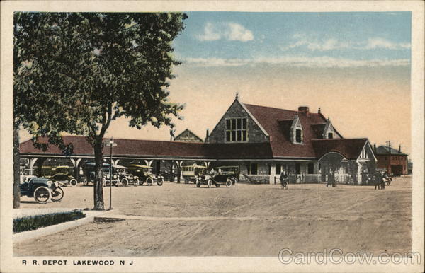 Front: R R. DEPOT. LAKEWOOD N. J THOMPSONS STORAGE WARE WOUSE 11 11110 Back: Pub. by E. Finkelstein, Lakewood, N. J. وام THIS SPACE FOR ADDRESS ONLY