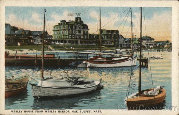 Front: 3396 10 WESLEY HOUSE FROM WESLEY HARBOR, OAK BLUFFS, MASS. 00 #11 Back: AMERICAN ART A-81558 Co CHICAGO AND ISLAND POSSESSIONS, CUBA, CANADA AND MEXICO FOR FOREIGN