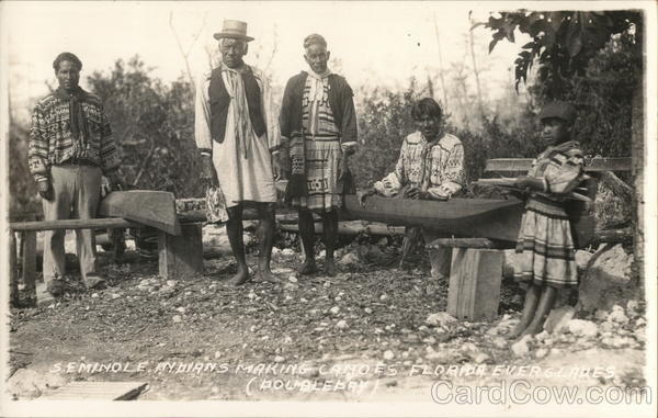 MEN SEMINOLE INDIANS MAKING CANOES FLORIDA EVERGLADES HOUPLE HAY