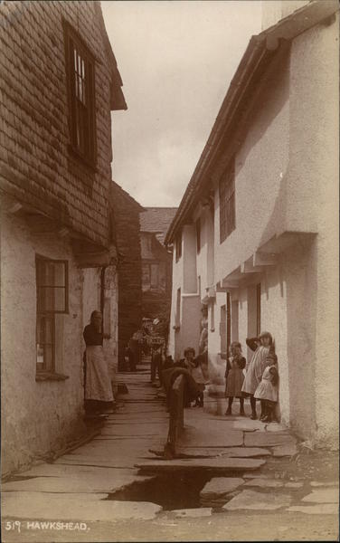 Front: 519 HAWKSHEAD. Back: Bells' Series. Copyright. Lantern Slides may be obtained from T. Bell, Chemist, Ambleside HERE