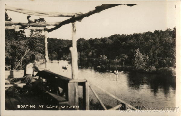 Front: BOATING AT CAMP WISDOM Back: Manufactured by Machleith Photo System, Milwaukee, Wisconsin Mwaungg Aworo d