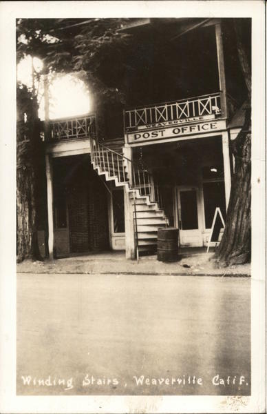 Front: INNTIL WEAVERVILLE POST OFFICE Winding Stairs, Weaverville Calif. Back: 4³ PM 1953 CALIF Here one for your collection Bona Remember-Only you can LINITED PREVENT FORE FIRES ADAMS Mr. Pred Elliott Scotia Calif