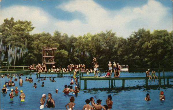 Front: 优势 717 119 Back: WAKULLA SPRINGS LODGE FIFTEEN MILES SOUTH OF TALLAHASSEE WAKULLA SPRINGS, FLORIDA View of Swimming Area Showing Diving Tower in Background. ART-CREATION FROM COLOR TRANSPARENCIES (REG.U.S.A. PAT. OFF.) CURTEICHCOLOR 5C-K1011