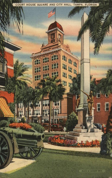 Front: COURT HOUSE SQUARE AND CITY HALL, TAMPA, FLORIDA T-46 EE PHOTO BY BURGERT BROS. Back: sod "TICHNOR QUALITY VIEWS" REG. U. S. PAT. OFF. MADE ONLY BY TICHNOR BROS., INC., BOSTON, MASS. 63094