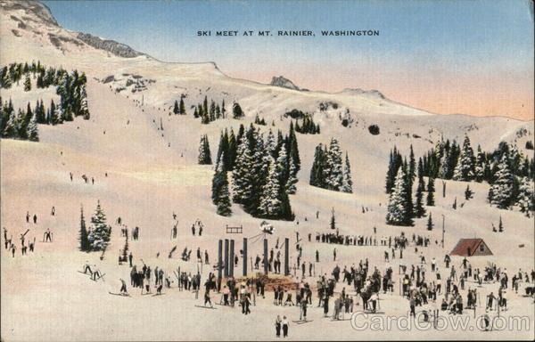 Front: SKI MEET AT MT. RAINIER, WASHINGTON Back: CO 10397N -MADE IN U.S.A. BY E. C. KROPP. CO., MILWAUKEE, WIS.-EIL