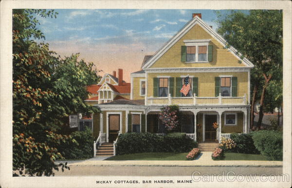 Front: LILA MCKAY COTTAGES, BAR HARBOR, MAINE Back: 7154 N MCKAY COTTAGES ROOMS YOU REGRET TO LEAVE TELEPHONE 390 243 MAIN ST. BAR HARBOR, MAINE LiB CO -MADE IN USA BY E. C KROPP CO, MILWAUKEE, WIS