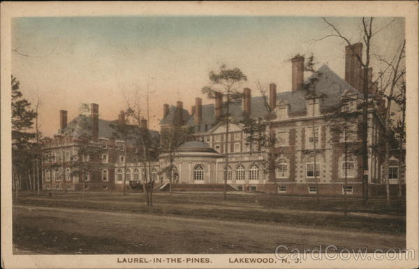 Front: LAUREL-IN-THE-PINES. LAKEWOOD, N. J. Back: Published by Leon A. Taylor, The Albortypo Co., Brooklyn, N. Y. HAND-COLORED
