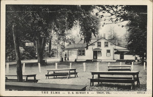 Front: ELMS THE ELMS U. S. HI-WAY 6 TROY, PA. 6 B591-N Back: 250 THE EL M S SPACIOUS PICNIC GROUNDS Open to the Public Fire Place, Plenty of Tables Pure Spring Water
