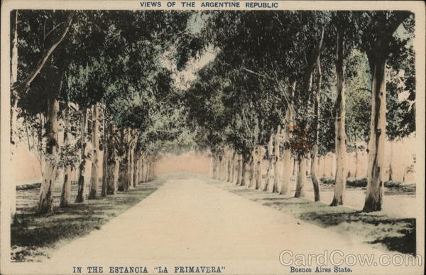 Front: VIEWS OF THE ARGENTINE REPUBLIC IN THE ESTANCIA "LA PRIMAVERA" Buenos Aires State. Back: CARTE POSTALE