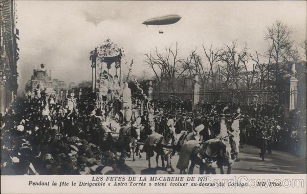 Front: THU LES FETES DE LA MI-CAREME DE 1911 Pendant la fête le Dirigeable « Astra Torrès » vient évoluer au-dessus du Cortège. ND Phot. Back: BRIEFKAART POSTKAART ОТКРЫТОЕ ПИСЬМО 40 TARJETA POSTAL
