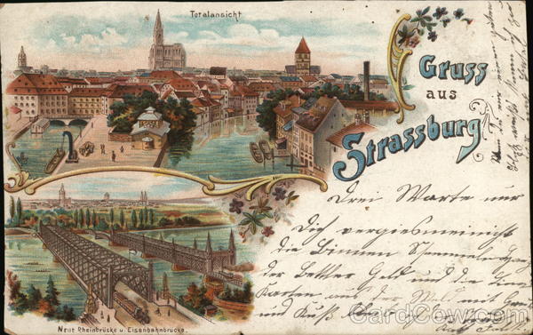 Neue Rheinbrücke u. Eisenbahnbrücke.